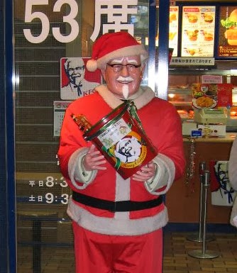 However it does not make sense that in a Christian country Christmas is being seen the nearly the same way as the Japanese see it. Television commercials of course are going to commercialize the holiday, that's what commercials are engineered to do, and there's nothing going to change that unless a huge spending campaign is undertaken to purchase a majority of advertising time on all channels. That's not going to happen. My big concern is that it looks to me like the celebration of Christmas here in a Christian country is being transformed into the Japanese version of Christmas: a romantic holiday like Valentines day where lovers come together over a gaudily decorated sponge cake, and if you're already married it becomes a day of family gatherings over a bucket of fried chicken.